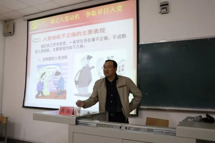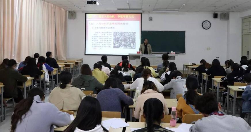 党总支书记周强主讲,第三期入党积极分子和发展对象参加。