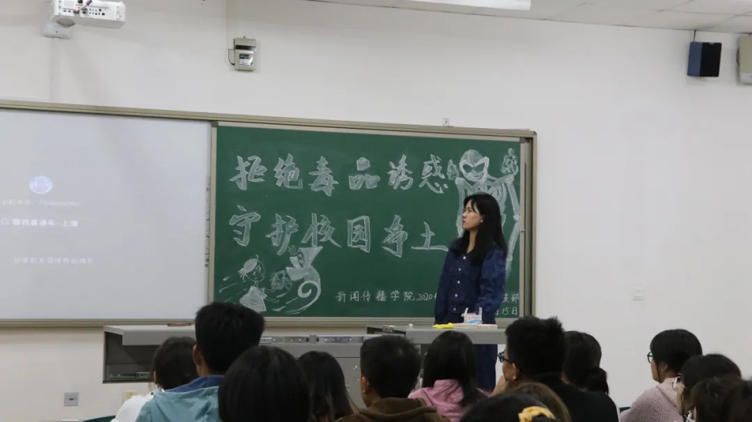 为进一步宣传禁毒活动,使同学们更加了解毒品给人类带来的危害,营造良好的校园禁毒氛围,10月15日晚,我院组织20级学生于文荟楼开展主题为“拒绝毒品诱惑,守护校园净土”的团日活动。