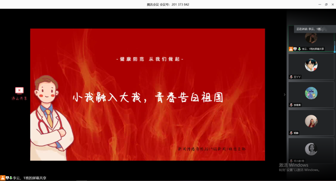 “520”喻义“我爱你”,在今天这个特殊的日子里,我们不仅要告白身边重要的人,还要向我们伟大的祖国表达深深的爱意!此次活动中,各班团支书通过腾讯会议组织同学们观看了有关抗疫与祖国取得辉煌成就的短视频,19级3班常琛同学饱含深情地朗读了刘半农先生的作品《叫我如何不想她》,表达了她对祖国深切的爱。“有了强的国,才有富的家”,我们的祖国曾经颓败萎靡、千疮百孔,跨越历史的洪流,今天的中国繁荣富强,国泰民安。在此次抗疫中,中国特色社会主义制度凸显出巨大的优越性,人民的生命安全得到保障,康复的患者也曾表示:“为生在中国而感到幸运、幸福!”活动中,19级三班谢鹏程同学和大家分享了自己提前录好的歌曲《我爱你,中国》,情感真挚,极富感染力,让同学们不禁也跟着吟唱起来。