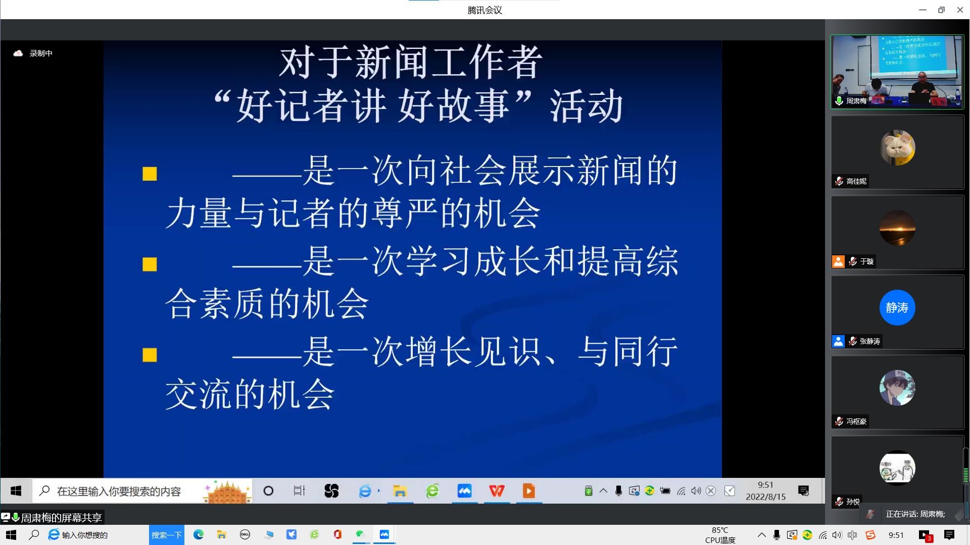 8月15日上午,由自治区党委宣传部、自治区党委网信办、宁夏新闻工作者协会和试玩游戏赚钱 共同举办的“2022年全区马克思主义新闻观(第五期)暨‘第九届好记者讲好故事’演讲比赛能力提升培训”成功举办。此次培训特邀辽宁省新闻工作者协会副主席兼秘书长、高级编辑马为,大连新闻传媒集团大连电视台赚钱游戏-试玩游戏赚钱高级记者卢建伟主讲,试玩游戏赚钱 副院长张静涛教授主持。全区各新闻单位参赛人员、县级融媒体中心工作人员、我院师生参加了培训。