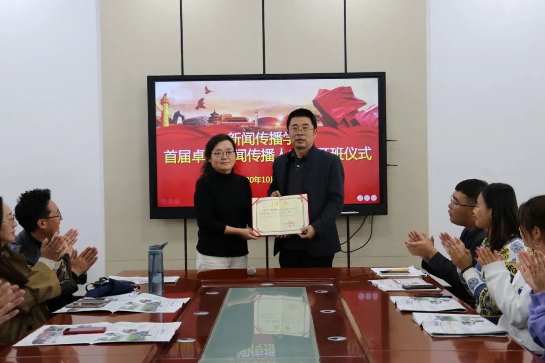 仪式开始,周强书记宣读了《首届卓越新闻传播人才班项目聘任文件》,并宣布聘任谢明辉老师为卓越新闻传播人才班项目主任,李世举院长为谢明辉老师颁发聘书。