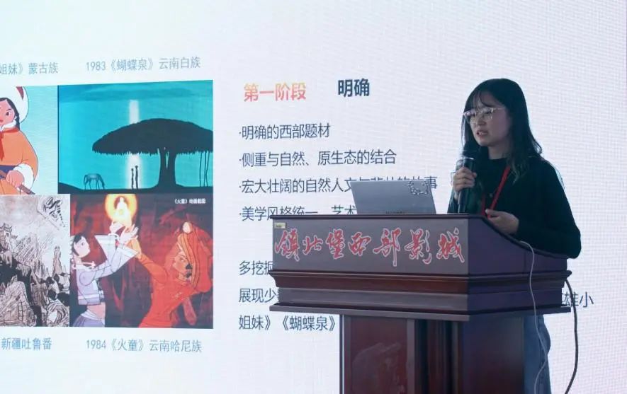 中国传媒大学龚倚玄以《脉络、转译与发展——中国西部历史文化题材动画创作研究》为题,梳理中国西部历史文化发展进程,阐述中国西部历史文化题材动画创作的发展脉络,分析中国西部历史文化在动画中的转译与焕新中,人物、元素、场景等细节处理,以及美学风格与西部精神情感处理。面对动画发展的新景象,中国动画未来可以向挖掘可转译、可跨文本的动画元素,输送中国西部历史人文自然形态出海等方向努力。