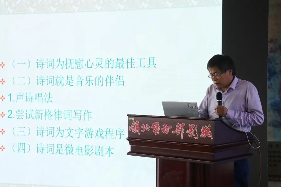 王丽萍教授以《以叙传情以象尽意:观宁夏元素影视剧中的意境“文心”》为题作主旨发言,通过分析极具宁夏元素的影视作品《新龙门客栈》《牧马人》《山海情》等,聚焦时代新风与地域地貌两个角度阐释宁夏题材影视剧中第一重“文心”——以叙传情;其次聚焦立典型、立众象阐释宁夏题材影视剧中第二重“文心”——以象尽意。