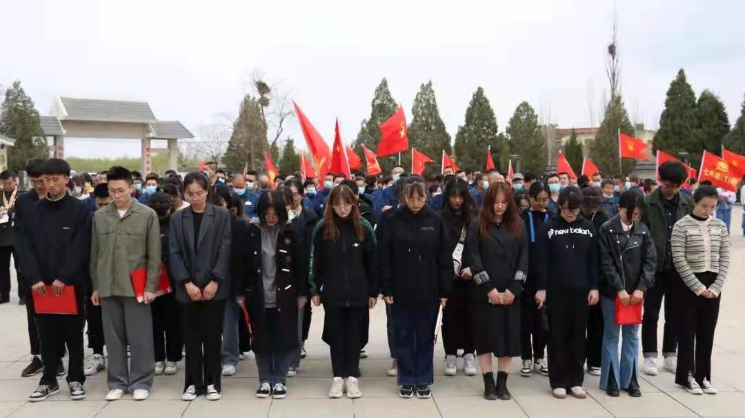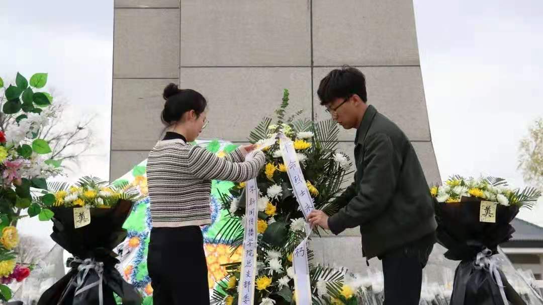 组织学生党员前往涝河桥烈士陵园进行清明扫墓祭奠活动,通过现场教育的方式推进党史学习教育走深走实。
