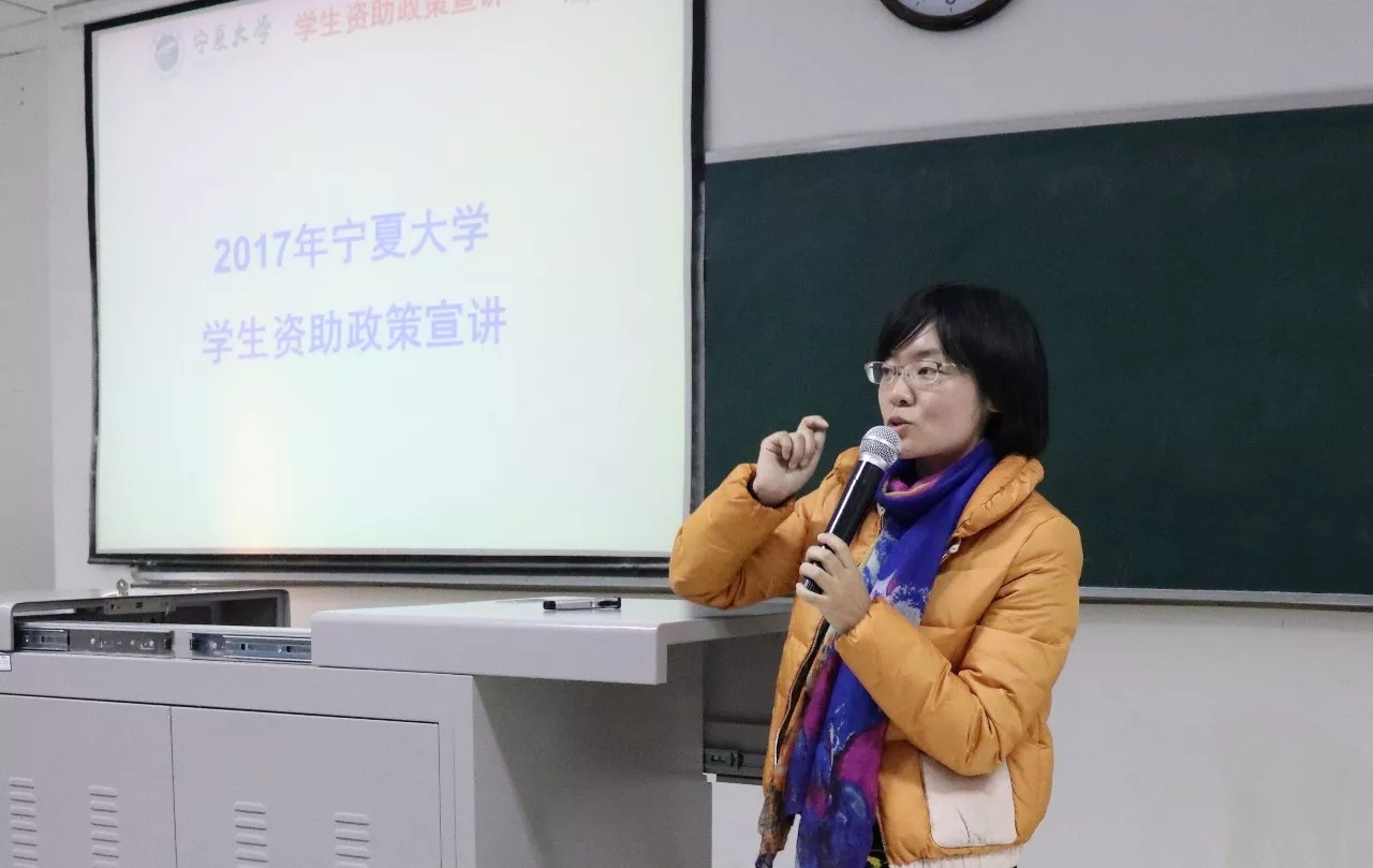 李瑾老师为大家介绍了高等学校学生资助政策和宁夏大学学生资助政策,特别对三金的评定、应征入伍服义务兵役国家资助、基层单位就业学费补偿国家助学贷款代偿等和同学们息息相关的资助政策做了详细的解读。