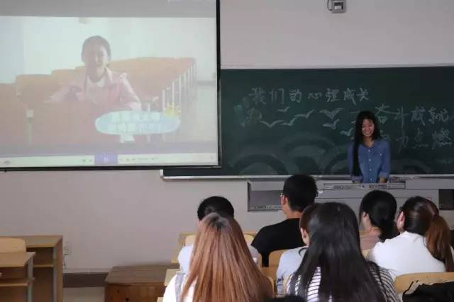 “高考是战场,自信满满增胆量,考题面前不慌张,仔细认真答题忙;高考也不是战场,人生成败非一场,成功未必美名扬。”李峰同学为大家分享了他高三最后一堂语文课老师对他们说的话。坐在大学的教室里,同学们回想着那年今日考场上奋笔疾书的自己,记忆犹新。团支书孙亚娇为大家播放了一段青春励志混剪片——《我们的高三》。熟悉的场景把大家的思绪带回了高三紧张的备考气氛中。同学们也分享了自己这一年的收获,张倩说“我的舍友就是我这一年最大的收获。”学习委员李桂童说:“这一年的忙碌就是我的收获,学会了做平台,学会了摄影,学会了采访…”