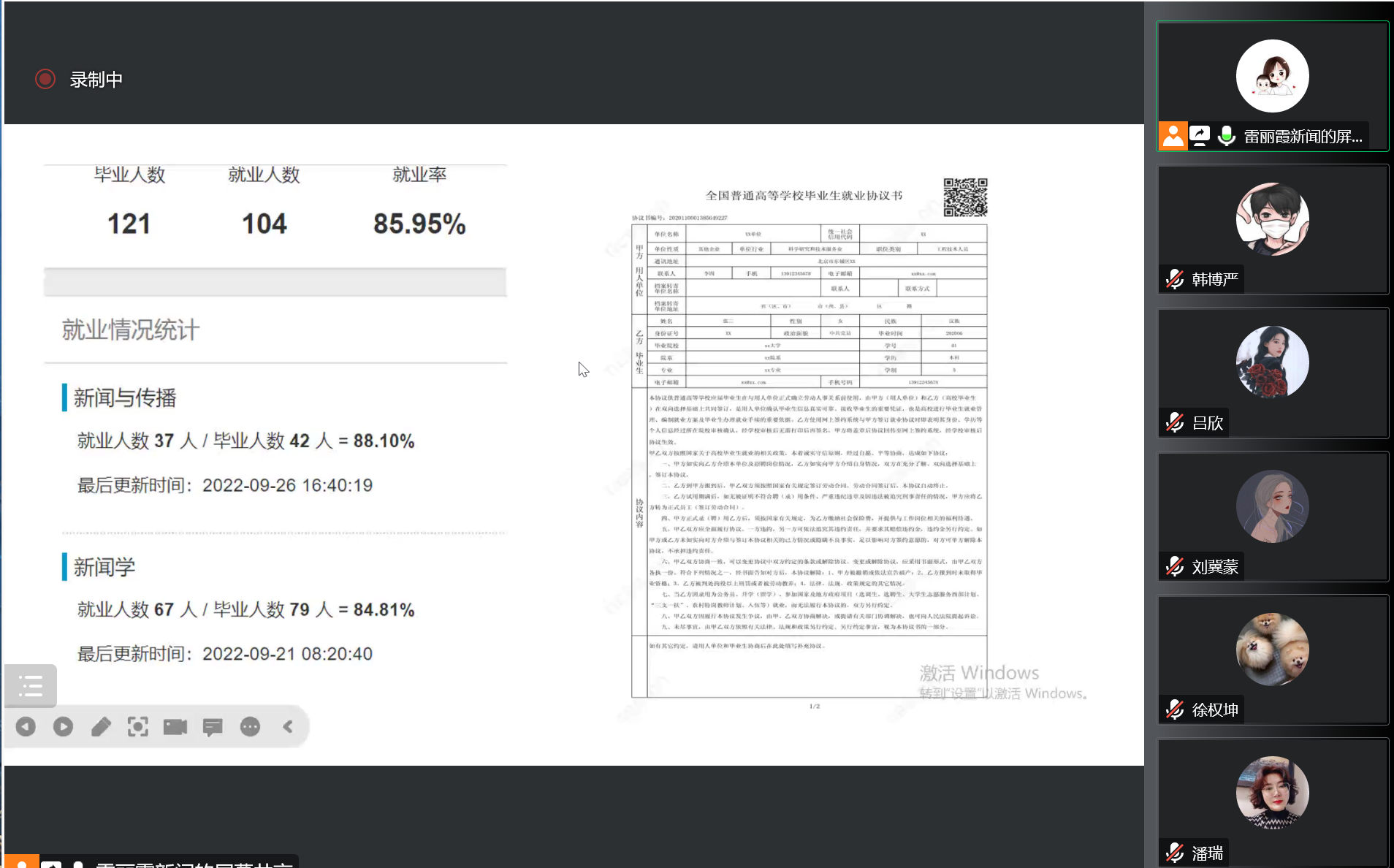 2022届毕业生的就业情况,对签订就业协议、签订劳动合同、科研助理、参军入伍、自由职业、升学、自主创业、国家基层和地方基层等就业形式进行了详细介绍,重点围绕网上签约平台中学生操作方法进行了培训。雷丽霞还对应届毕业生身份进行了重点解释,暖心激励毕业生先就业后择业。