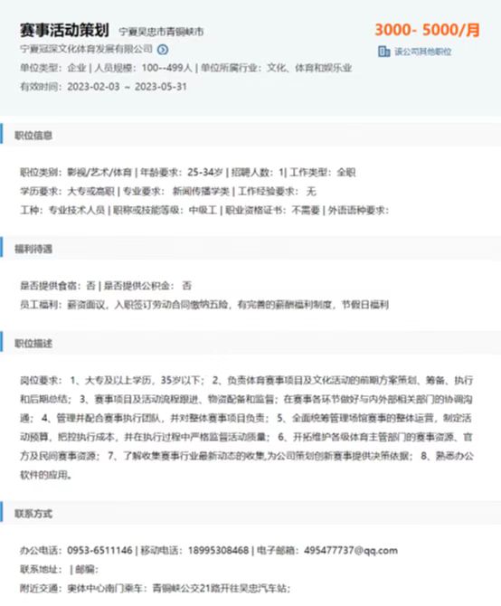 岗位:赛事活动策划