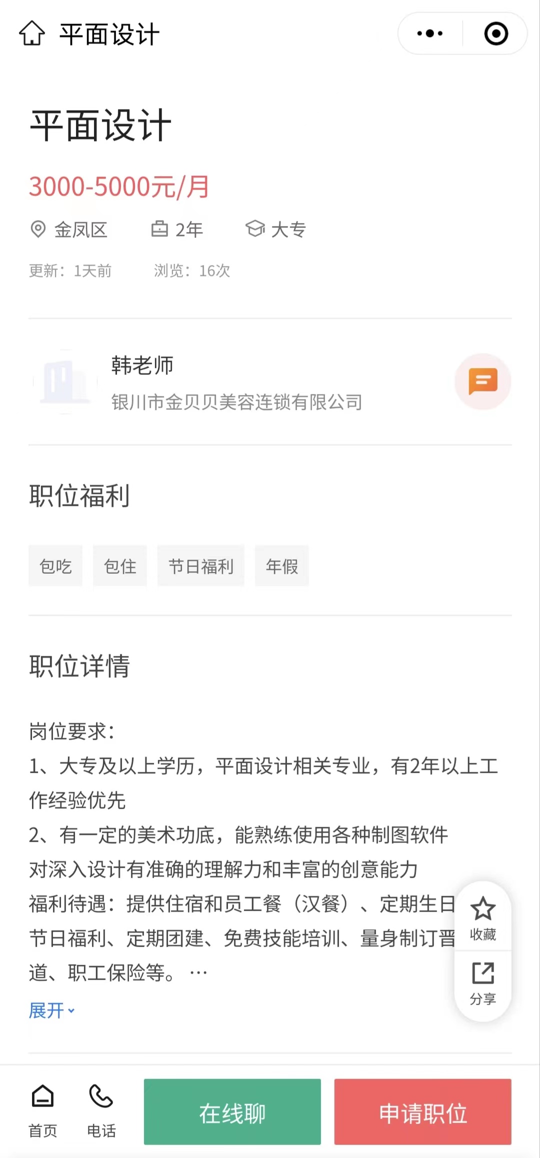 3.公司:银川市金贝贝美容连锁有限公司