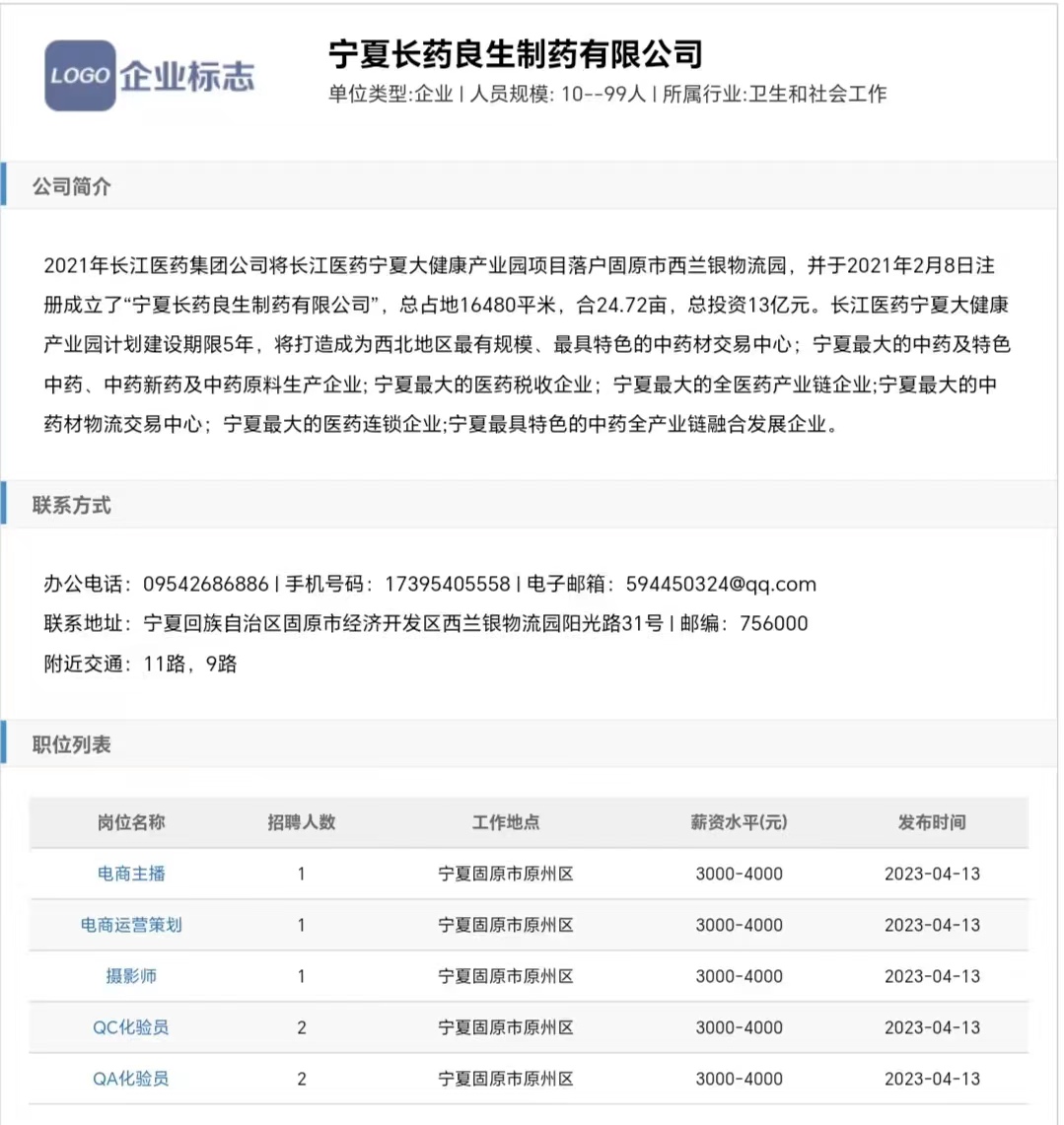 公司:宁夏长药良生制药有限公司