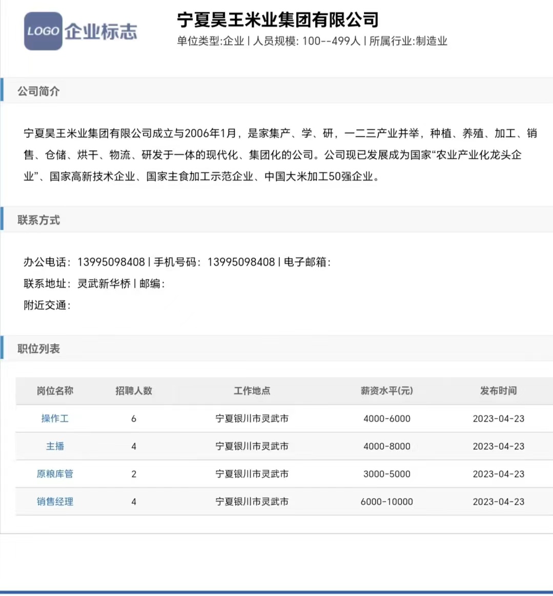 公司:宁夏昊王米业集团有限公司
