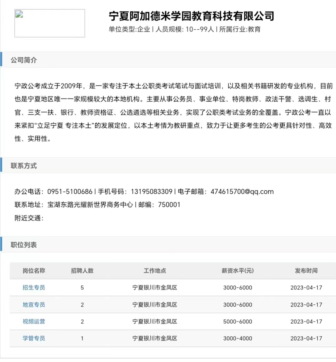 公司:宁夏阿加德米学园教育科技有限公司