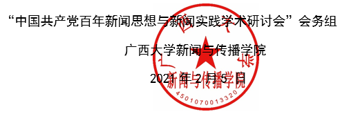 ,拟联合一些高校新闻院系和研究机构,于5月22-23日在南宁共同举办“中国共产党百年新闻思想与新闻实践学术研讨会”。我们希望通过学术研讨与经验交流,为深化中国共产党新闻实践与新闻思想研究,推动马克思主义新闻观中国化做出新贡献。