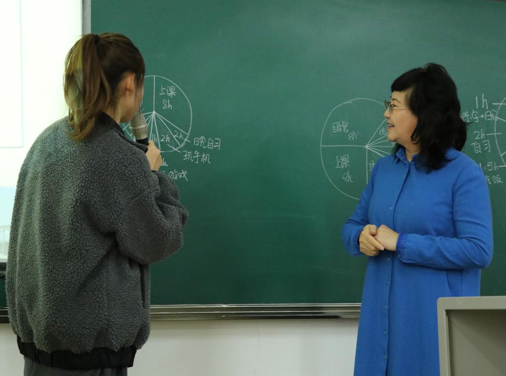 王淑莲教授结合学生的工作、学习和生活情况,详细分析了学生干部的个性特征,强调同学们要热爱生活,有良好的心态、组织领导力和大局意识;并叮嘱同学们在平时的学生生活和工作中,学习心理知识,增加人生智慧,学会交往,加强与同学间的沟通和交流。通过绘制“时间管理馅饼图”的方法,王教授向同学们分享了如何打造阳光心态的技巧,建议大家要加强时间管理,有目标、有追求;学会感恩、学会分享、学会倾听;保持高度自信,与人愉快相处;适时调整、管理好自己的情绪与压力,以健康积极的阳光心态投入到学习、生活与工作中。