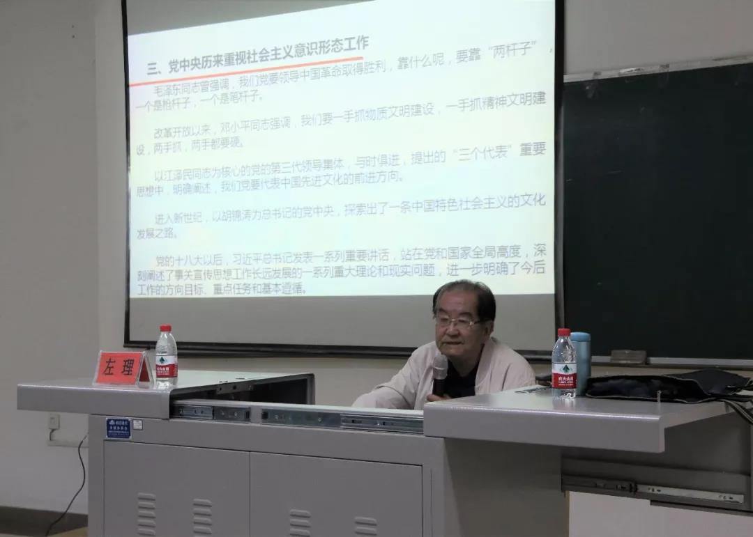 4月16日下午,宁夏大学关心下一代工作委员会“五老”报告团左理老师在贺兰山校区文荟楼103教室为我院学生做了题为“必须高度重视社会主义意识形态工作”的讲座。