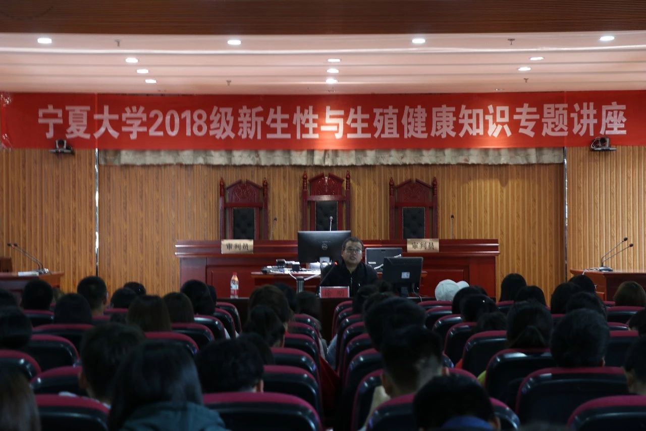 的徐明教授和宁夏疾病预防控制中心的吴忠兰主任为我院新生讲授性健康的重要性。