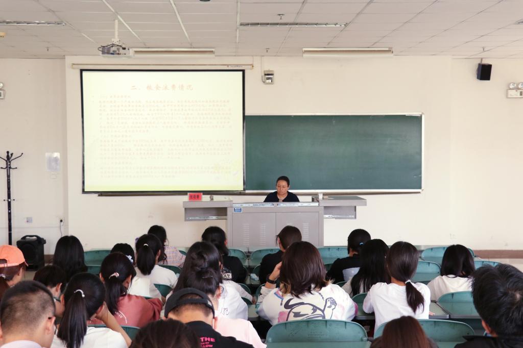 9月10日下午,我院组织2021级新生于文荟楼232教室开展以“节约粮食 杜绝浪费”为主题的教育讲座。本次讲座由宁夏大学后勤保障部饮食服务中心张萌菁老师主讲。