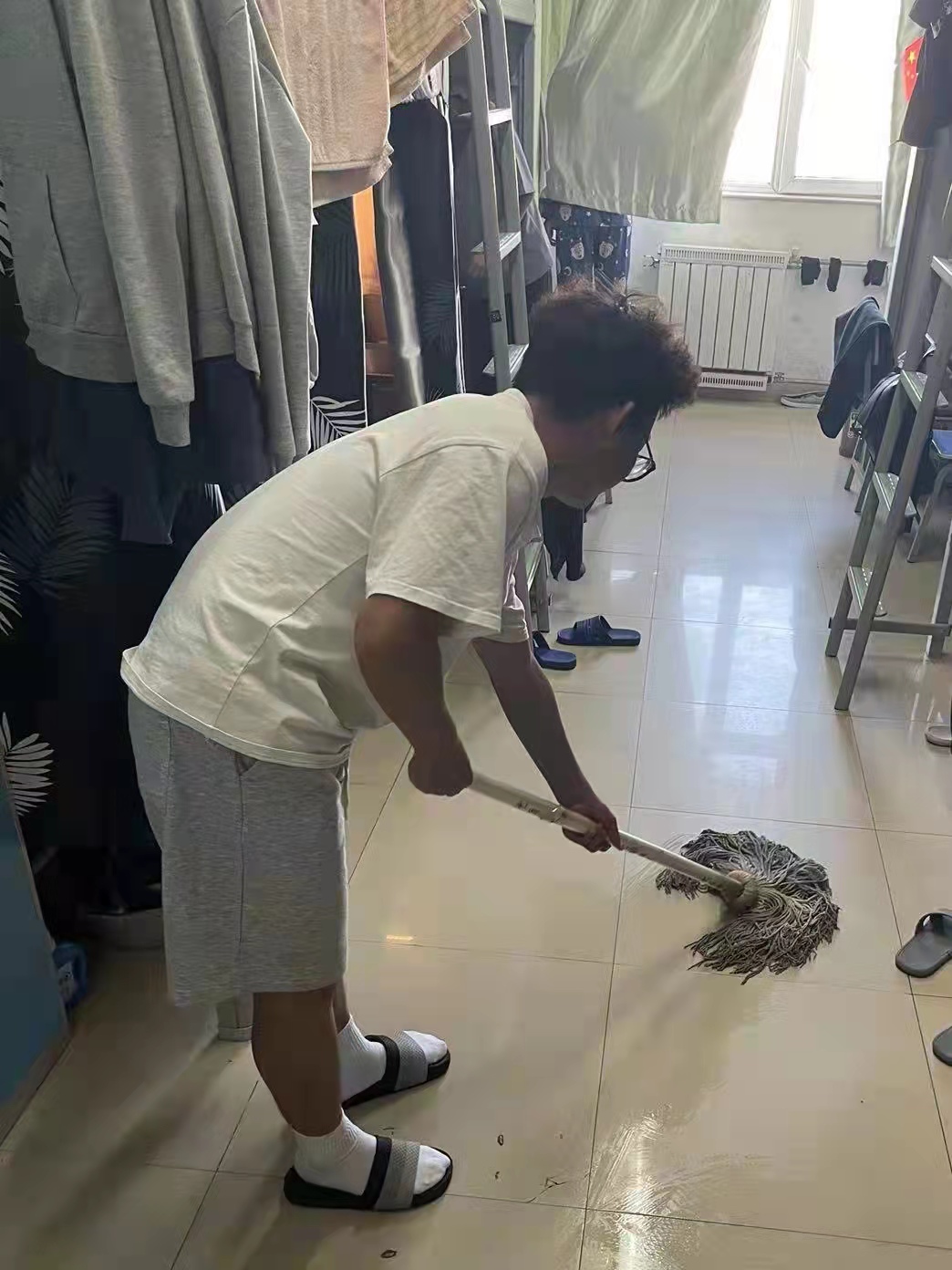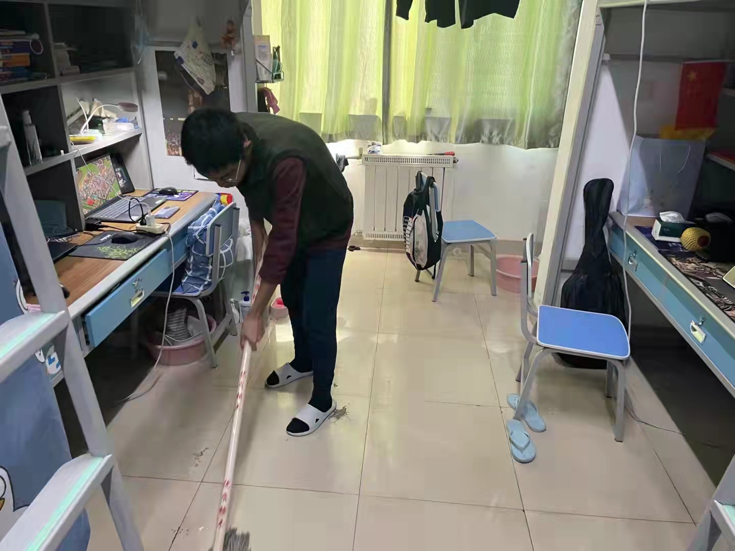 为了保持宿舍内的清洁卫生,创造一个干净整洁的学习和生活环境,赚钱游戏 组织全体男生开展宿舍卫生清扫活动,同学们积极响应号召,踊跃投入到打扫卫生的行列中。