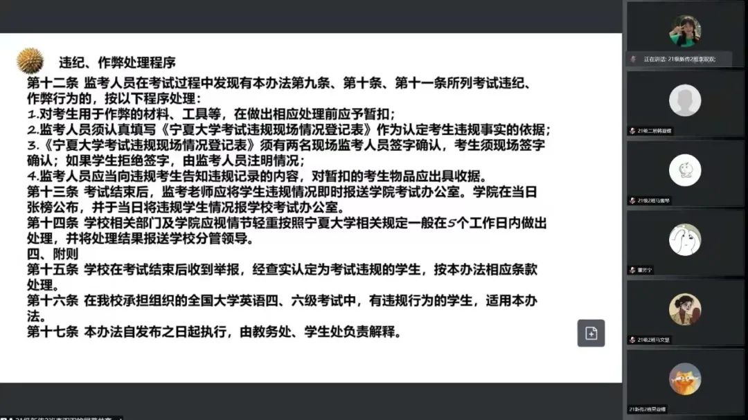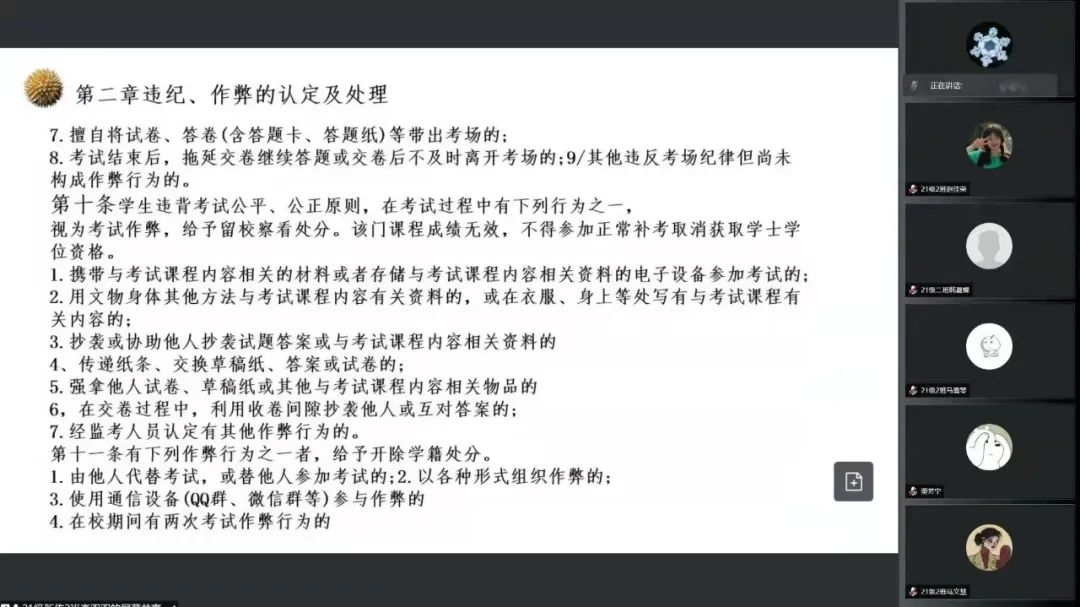各班级学习了《宁夏大学学生考试违规处理办法》文件精神,团支书通过展示ppt详细阐述了诚信的作用及意义,强调了诚实守信在社会中的重要性,在考试过程中,大家应严守考试纪律,坚持公平竞争原则,坚定慎独自律操守,维护考场公平秩序;结合“感恩励志成才”主题,班级同学谈到了国家政府各项资助政策及我校的资助体系,他们表示感恩教育的内容就是知恩图报,我们要学会识恩、知恩、践行感恩,并把感恩之情化为学习中自强不息、顽强拼搏的励志精神,砥砺前行。