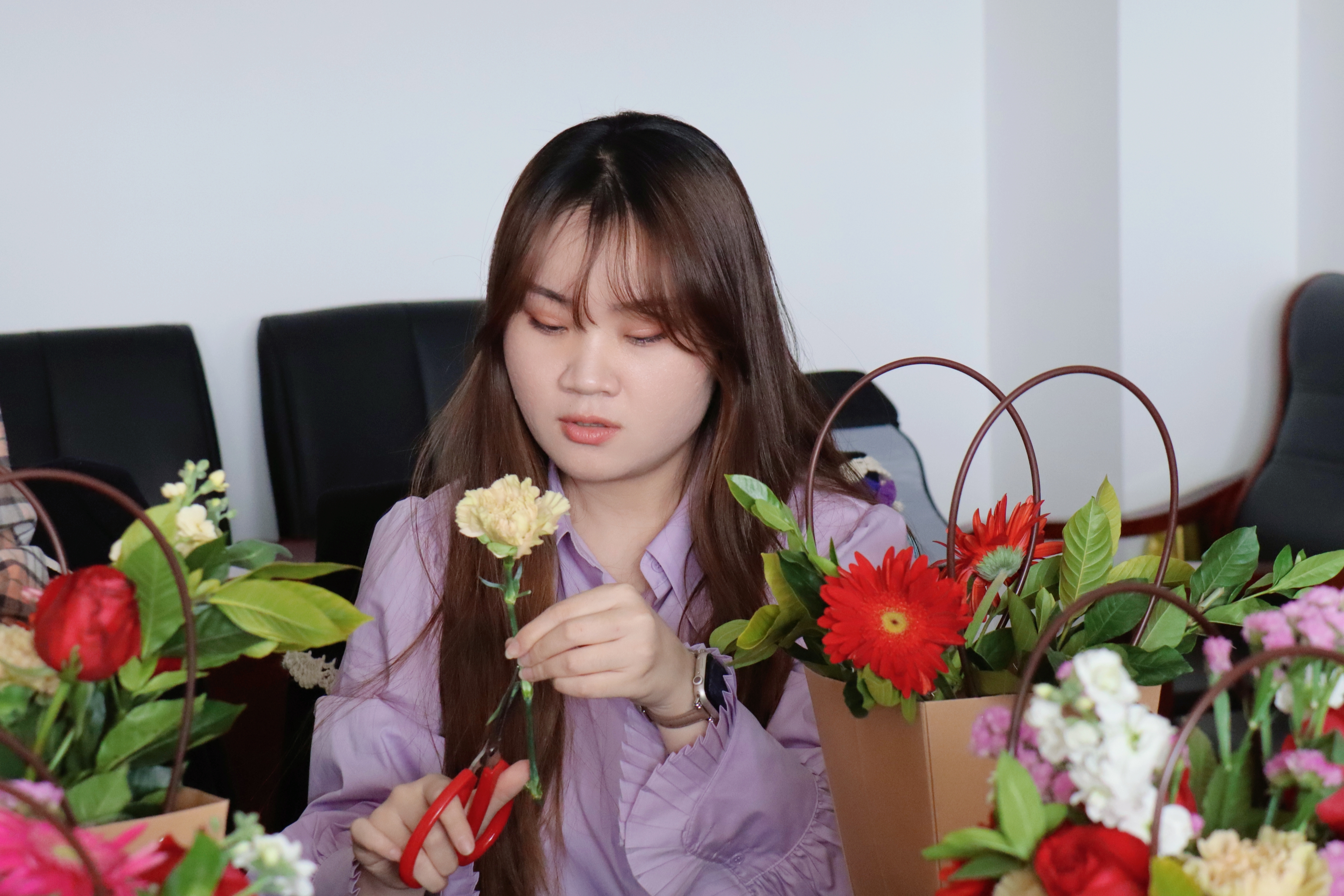 工会小组邀请的花艺师团队给全体教职工开展了花艺技能培训。花艺老师讲解了不同鲜花的花语、培育知识,让大家对鲜花乃至花艺有了一个较为全面的认识。初春三月,老师们暂时停下繁忙的工作,用丰富的花材完成自己的插花作品,感受春的美好,在欢声笑语中、在姹紫嫣红中,极大地放松了身心、减去压力、收获了幸福和快乐。春到新传花正妩,恰逢第112个国际劳动妇女节,这束束鲜花也蕴含着赚钱游戏
