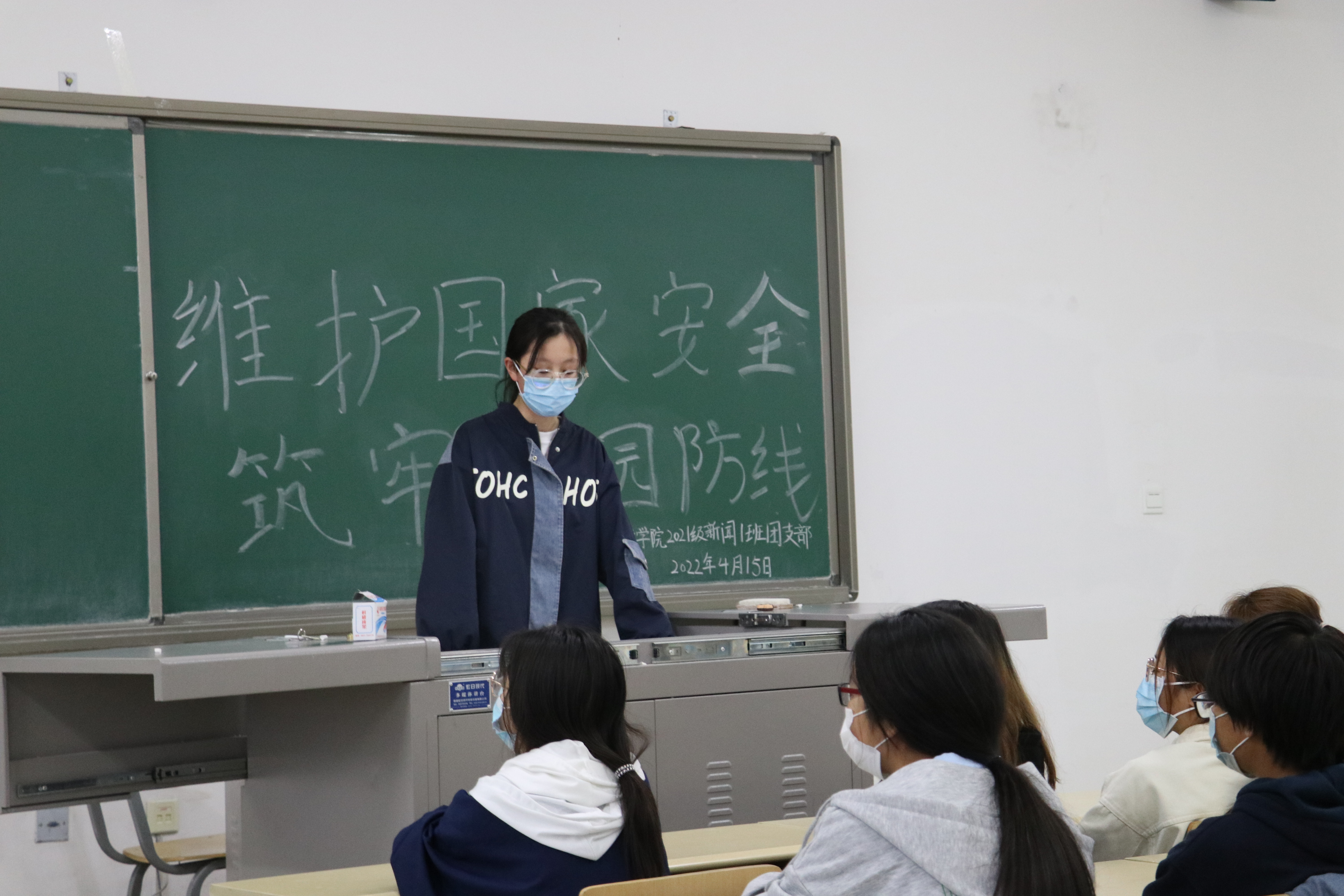 为深入贯彻落实习近平总书记提出的“总体国家安全观”理念,提高同学们维护国家安全的法律意识,我院于4月15日于文荟楼四楼举行主题为“维护国家安全,筑牢校园防线”的团日活动,2021级全体同学参加。