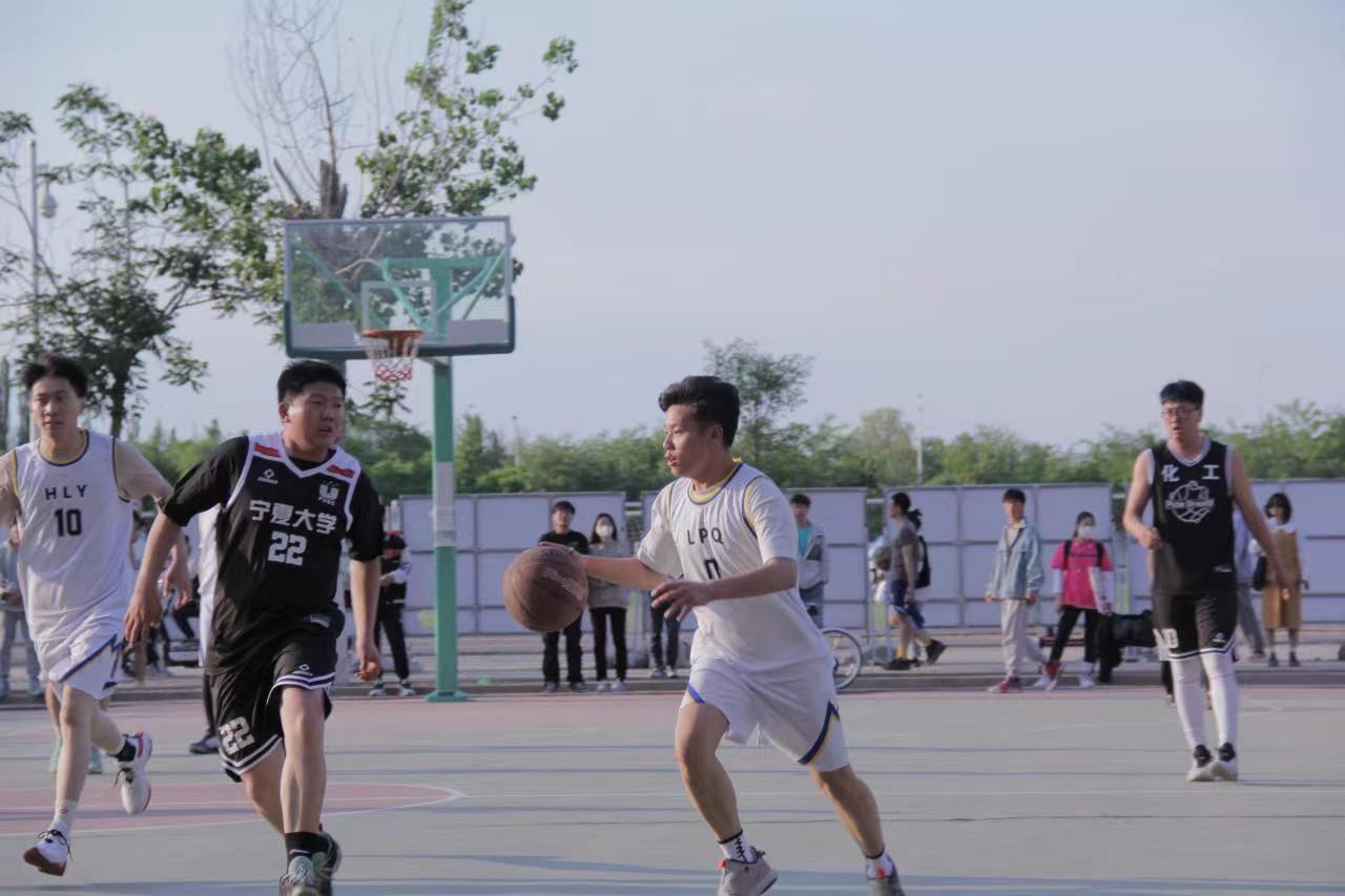 于文萃校区篮球场开展篮球友谊赛。新传学子热情高涨,活力满满。