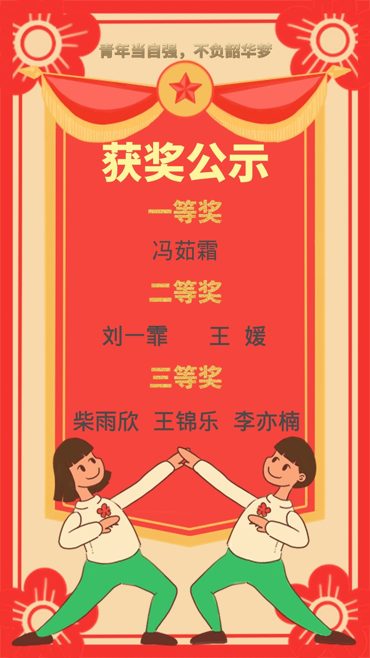 为进一步弘扬五四精神,倡导文明新风,彰显时代精神和青春价值,我院举办了“青年当自强,不负韶华梦”系列活动。各路选手踊跃参赛,作品以多种形式展现,充分表现出对革命先烈的缅怀,对未来的希望,经过一轮讨论与筛选,最终确立了以下获奖名单。