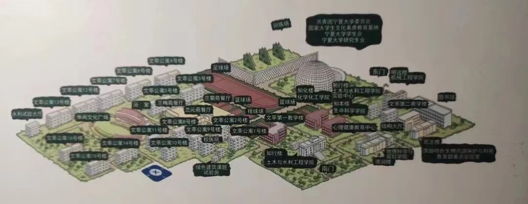 上午九点,三个小组于文萃校区智慧餐厅门口集合,在李鹏强、于晨曦、刘小舟三位学长的带领下游览校区。新生们先后参观了食堂、图书馆、大学生活动中心、操场、凌云广场、金波湖、孔子雕像等校园景观。于晨曦学姐向同学们详细介绍:“贺兰山校区的南大门正对着的雄伟建筑,是校园的主楼。学校的图书馆分别设立于文萃校区和怀远校区,同学们可以在那里漫游书海,也可以在众多自习桌中找到属于自己的学习天地。”