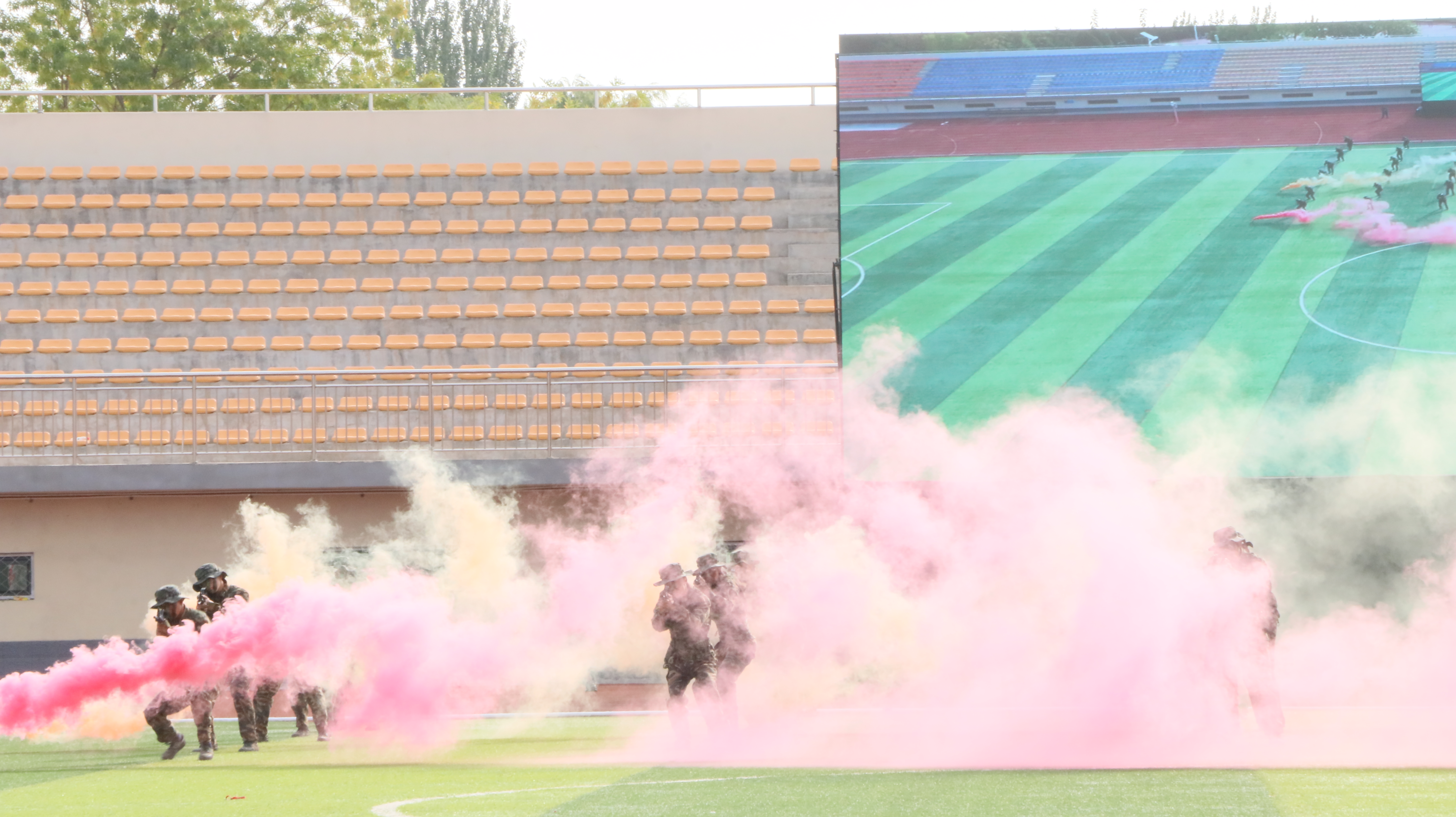 匕首操、擒敌拳、防爆队形、军歌合唱等精彩演出声势浩大、震撼人心,无数个个体团结一心,一招一式尽显披荆斩棘的壮志与豪情!