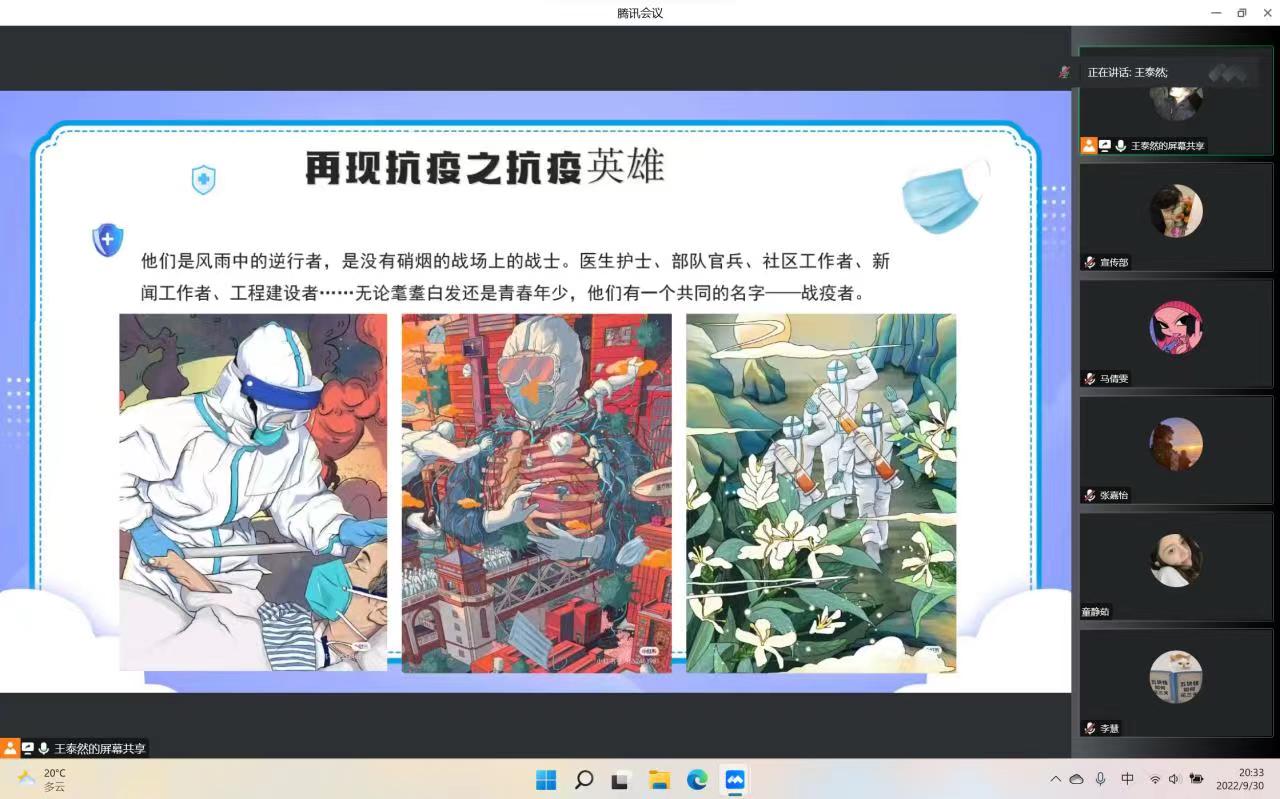各班团支部书记主持班级活动,通过PPT展示、视频播放、感想交流等形式帮助同学们了解什么是冠状病毒、感染病例的症状、感染患者的临床表现以及预防新型冠状病毒感染的方法,号召同学们充分认识感染新型冠状病毒的危害并积极做好个人防护。2021级卓越人才新闻班团支部书记孙悦说:“大家要尽量少买或不买快递,严格遵守学校疫情防控规定,校园内务必须做到戴口罩,勤洗手,多通风,用实际行动共筑校园疫情防控安全屏障。”