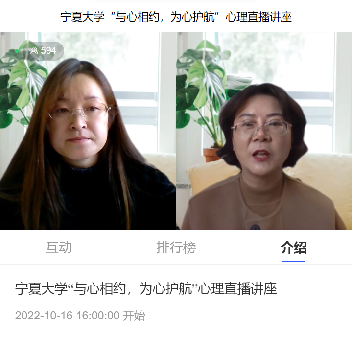 为增强学生和家长的抗疫信心,缓解家长对学生的担忧情绪,我校于10月16日下午举办了“家校协手,为心护航”心理直播讲座。讲座由宁夏大学学生工作部(学生处)和宁夏大学学生心理健康咨询中心主办,宁夏大学副教授潘瑞、副教授秦莉主讲,隔离学生家长近860人聆听了讲座。