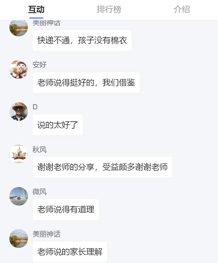 讲座最后,秦莉建议家长们能够和孩子多多沟通,将家长的爱真切地表达出来,给予孩子爱的鼓励,共克时艰。家长们纷纷在评论区写出对孩子的寄语,表达出对孩子真切的关心和诚挚的爱。