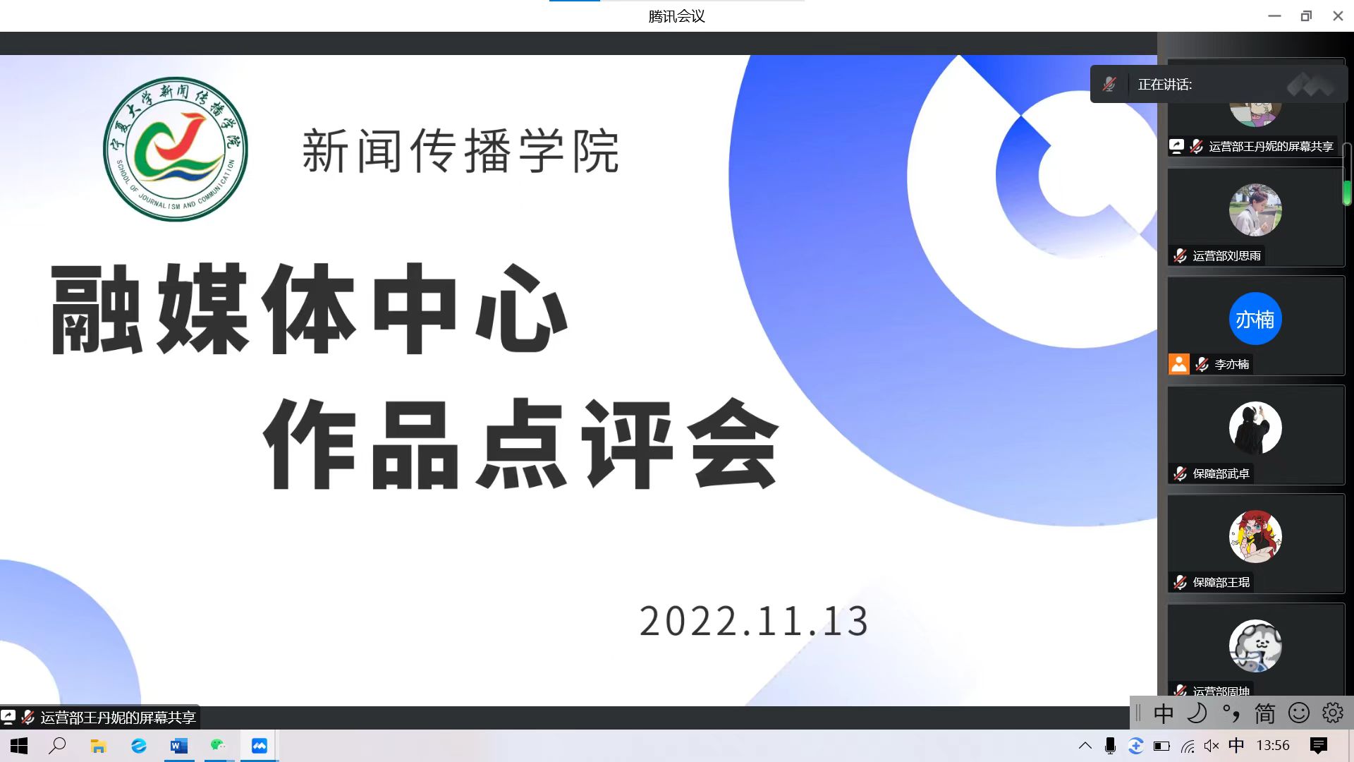新闻宣传工作,巩固提升融媒体中心成员业务能力,我院于11月13日下午,在线上召开融媒体中心第一次新闻作品点评会。院党总支书记潘瑞、副院长于鹏亮应邀参会,指导教师俞运宏、雷双军主讲,融媒体中心52名学生记者参加了培训。