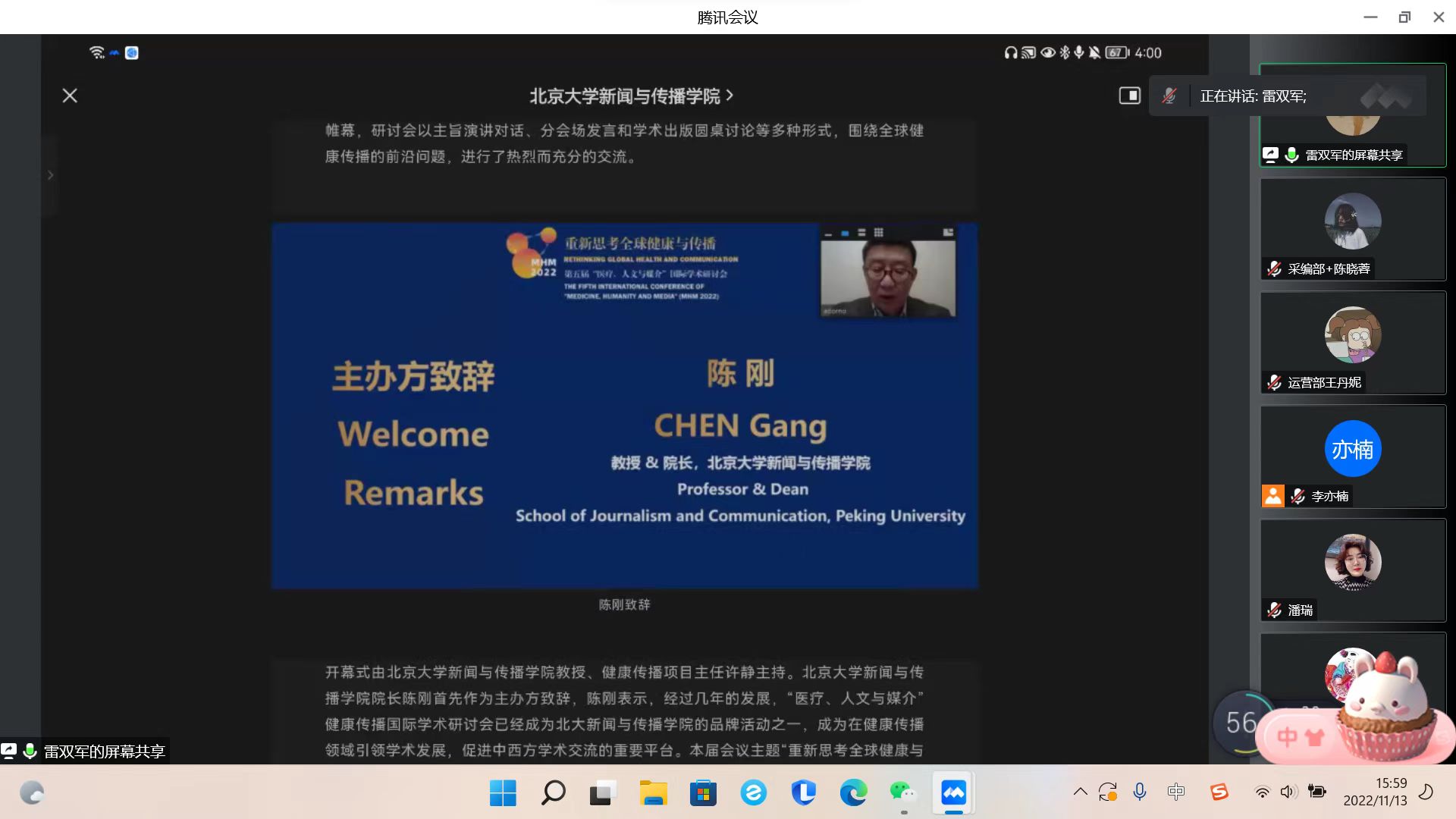 雷双军进行了新闻图片拍摄点评。他介绍了新闻摄影与宣传摄影的区别,说明了现场跟拍和会议截图的注意事项,并对往期推文中的图片进行细致点评,以此帮助学生记者明确拍摄目的、理清拍摄思路、把握拍摄要点。