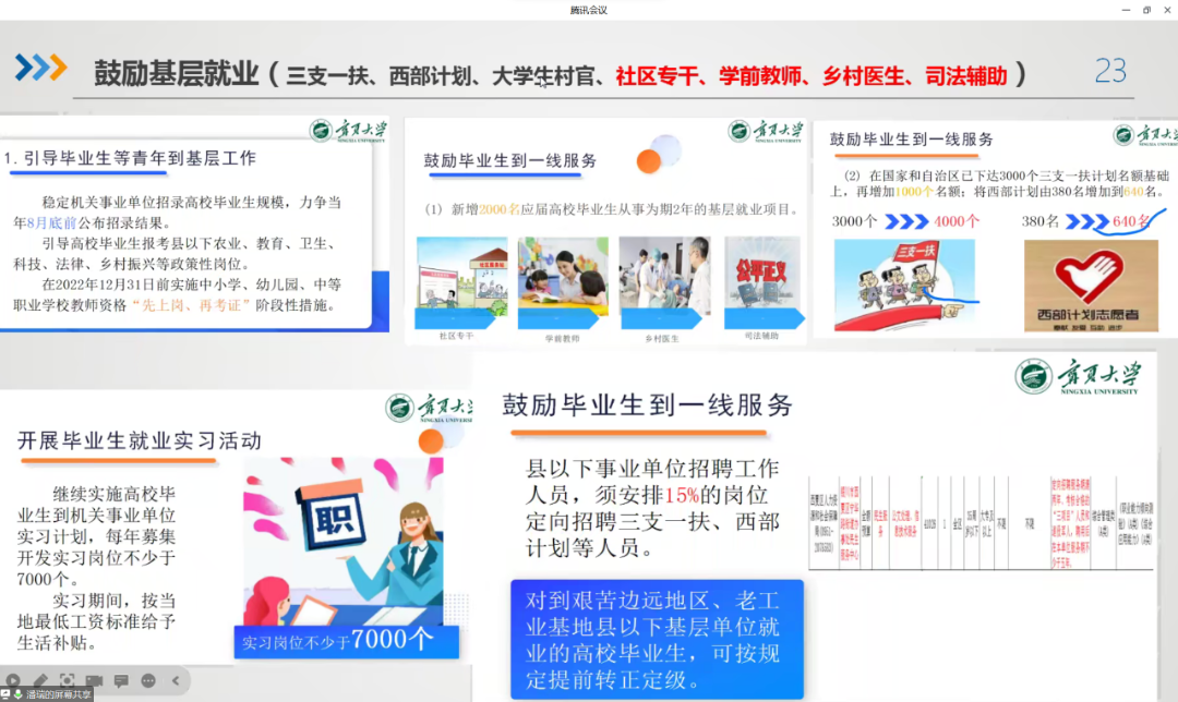 本次宣讲活动,帮助毕业生深入了解政策、把握就业形势,积极就业,进一步做好求职规划,助力毕业生尽早尽快实现就业目标,更好地实现人生价值。