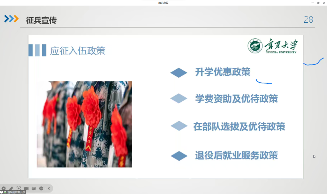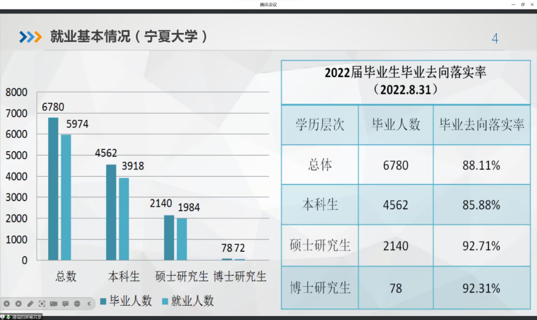 潘瑞对自治区鼓励毕业生到企业、基层就业的政策和《宁夏基层就业学费补偿、国家助学贷款代偿制度》进行了详细解释,对我国的应征入伍政策进行了说明,为毕业生就业提供了新思路。