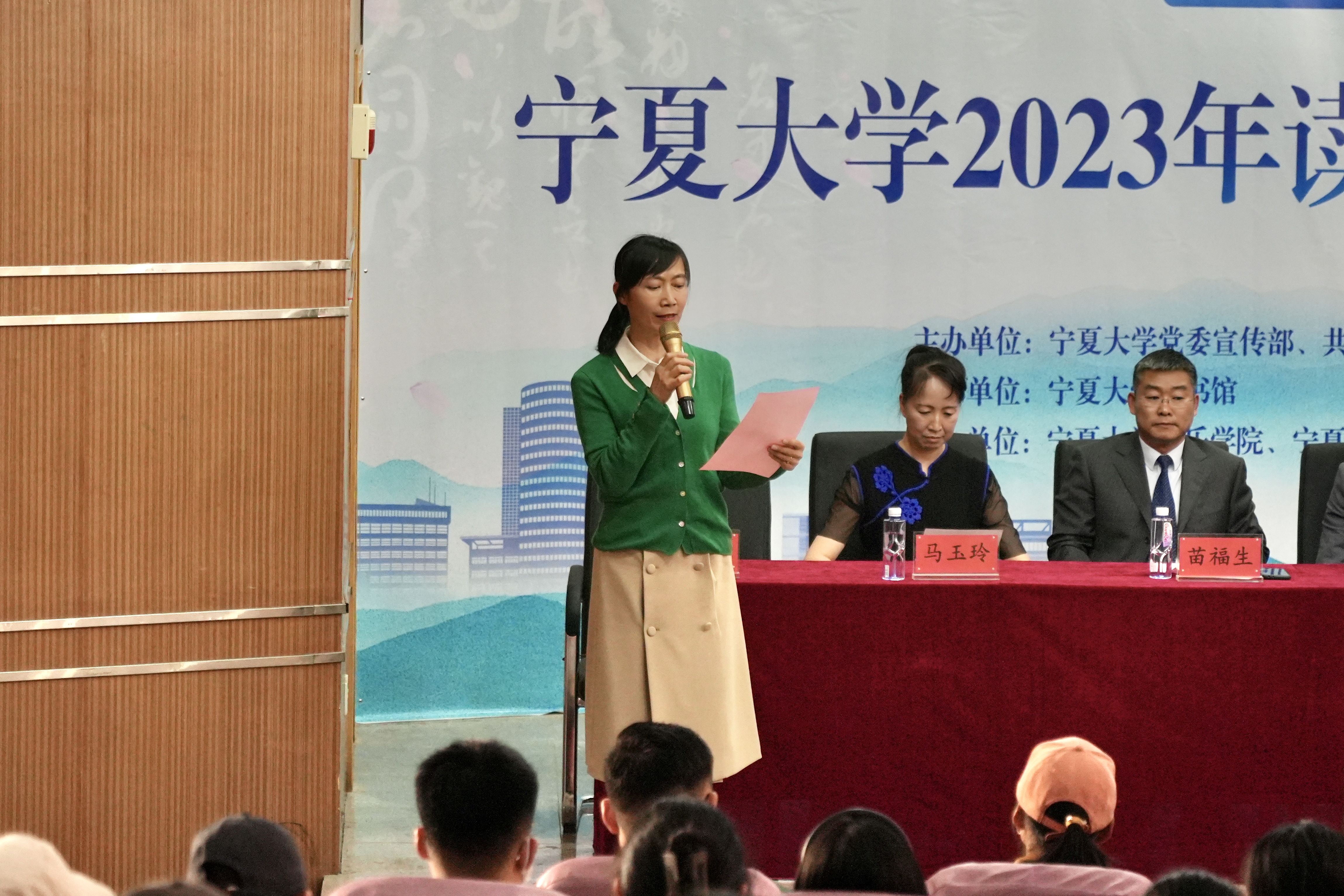 为了迎接第二十八个“世界读书日”暨第二届全民阅读大会的到来,营造“书香校园”阅读文化氛围,宁夏大学图书馆围绕“阅享新时代•书香润校园”主题,于4月19日在宁夏大学逸夫图书馆报告厅举行了2023年读书月系列活动启动仪式,启动仪式由我院2022级播音与主持艺术专业学生周佳韵和郑俊杰主持。