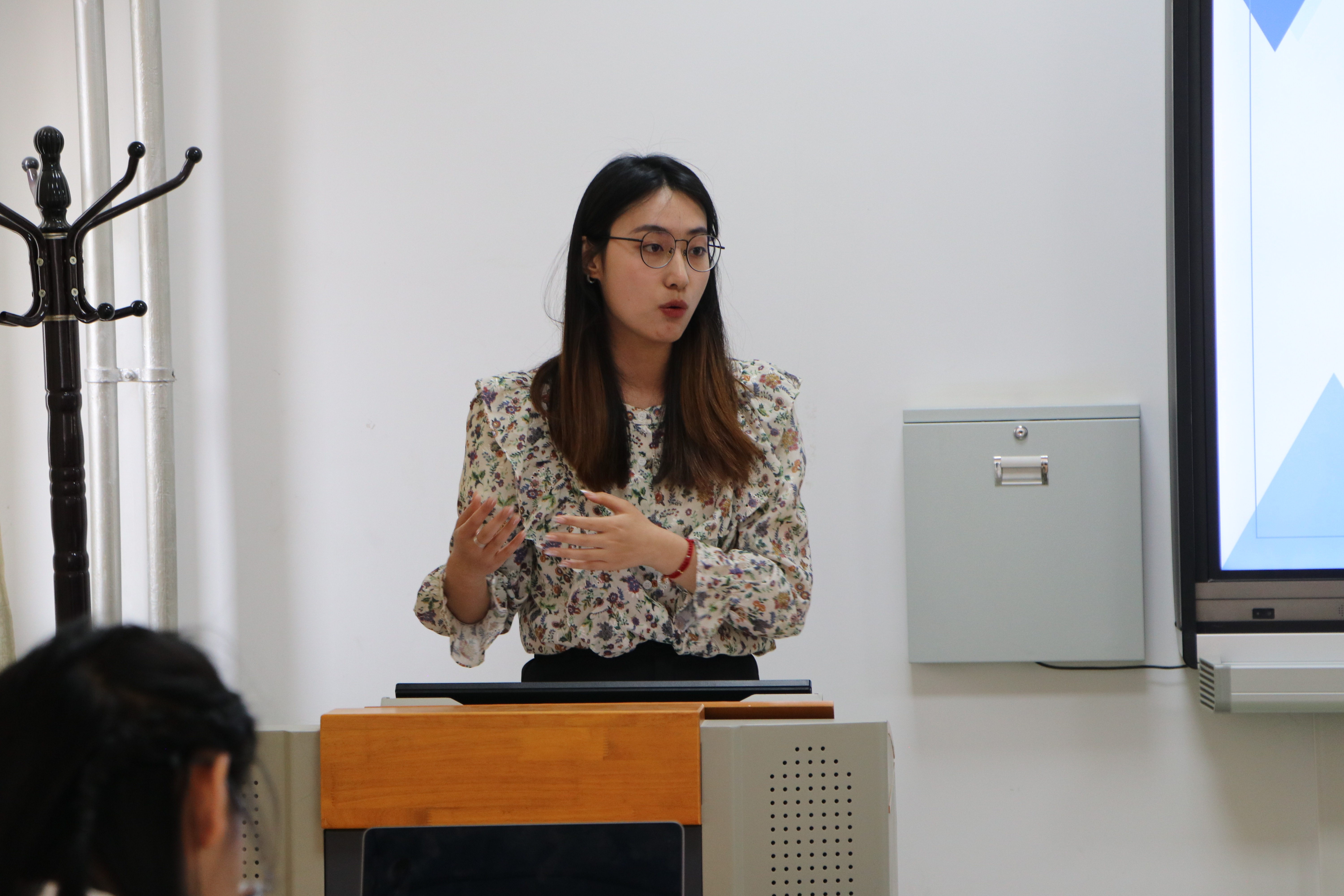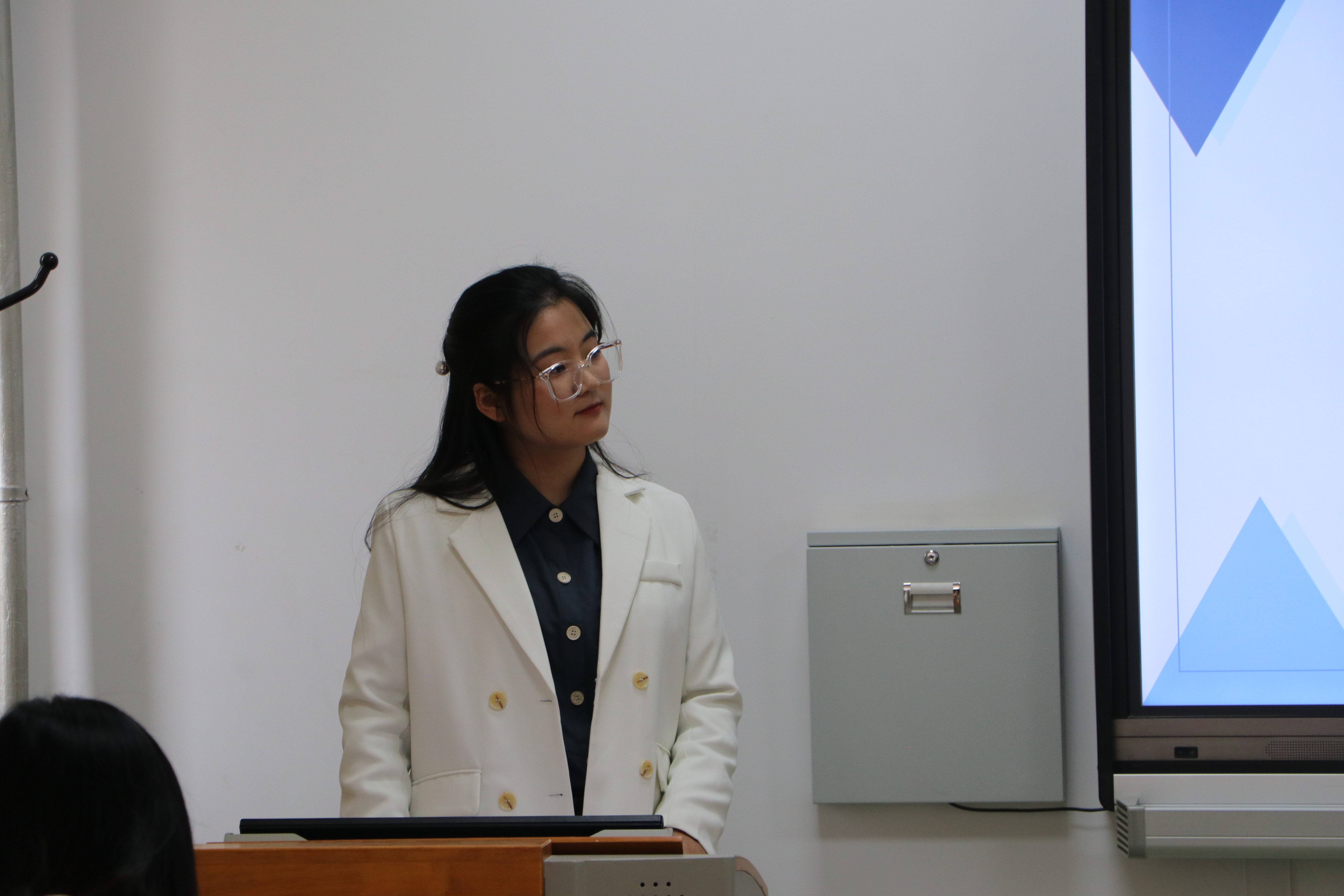 景思怡在看到侵权问题的负面影响之后,采用文献研究法和案例分析法,深入剖析了侵权的形式以及其背后的深层社会原因,并提出了措施和方法和对于当前治理情况的建议和意见。顾广欣老师指出论文的案例选取依据不够,对于重点内容的解释不够详细,文本不够简洁精炼。赵蕊和马海梅对宁夏长和翡翠酒庄的发展提出了自己的策划方案。两人通过微醺加旅行方式,创新葡萄酒的体验形式,并提出其推动宁夏农特产品的品牌发展的重要意义。赵蕊对市场,消费者等进行分析,推出了观、品、玩三者相结合的体验方式,并采取线上与线下共同进行的传播形式,最大程度地展现了葡萄酒的魅力。