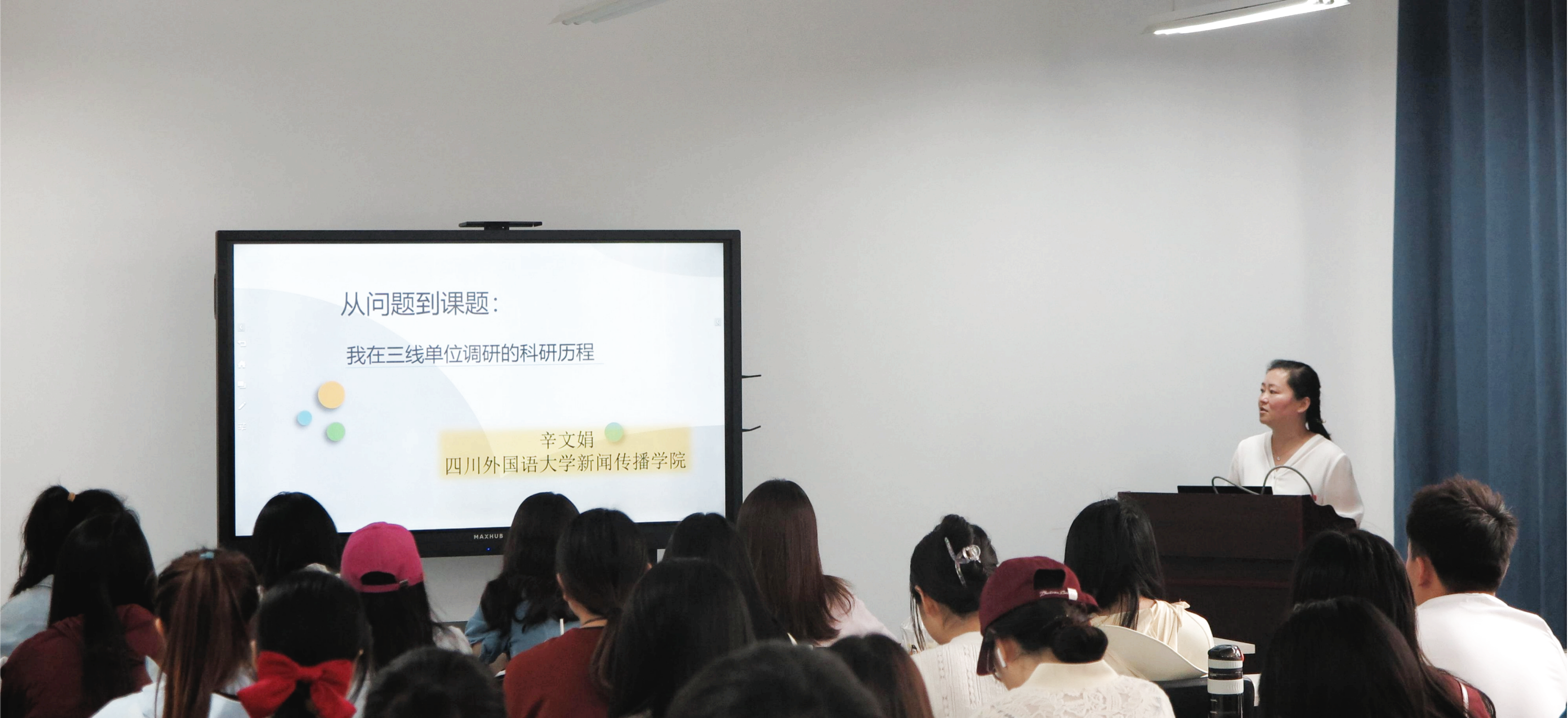 教授辛文娟博士做了题为《从问题到课题:我在三线单位调研的科研历程》讲座。硕士生导师谢明辉教授主持讲座,2022级全体硕士研究生、部分青年教师和本科生聆听了讲座。