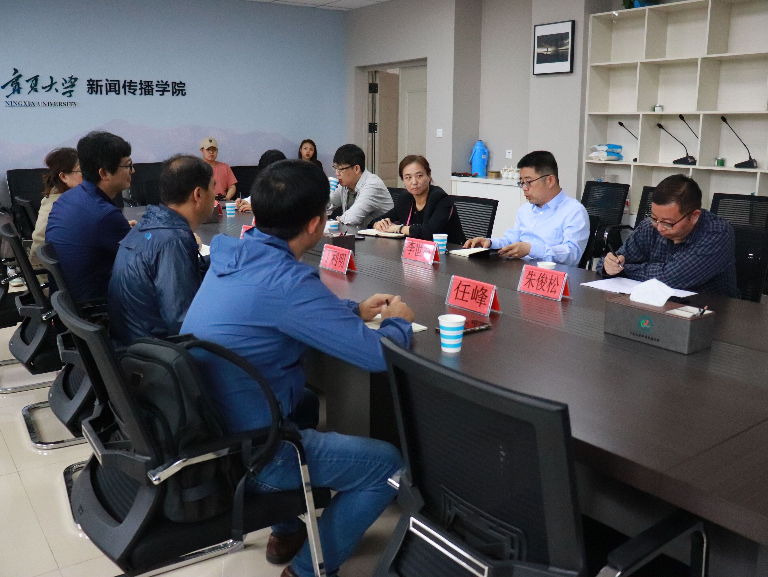 党总支书记苏洁、执行院长李世举、副院长于鹏亮,新闻系副主任于璇、广告系系主任朱俊松参加了座谈会,李世举主持座谈。