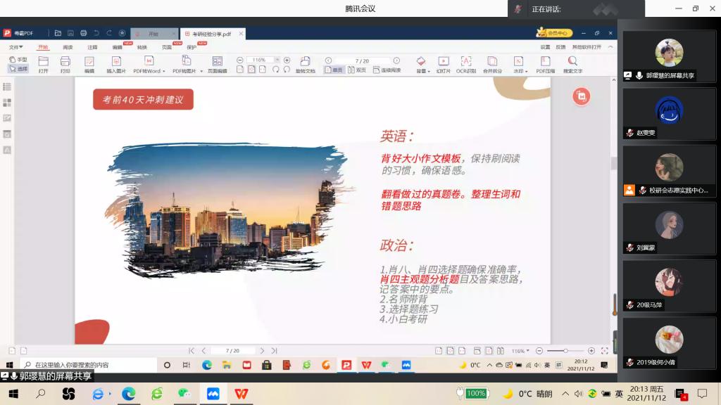 疫情来袭,网课重启,冰冷的屏幕湮没不了同学们的学习热情,面对重要的研究生考试,我院于11月12日下午在线上开展研究生志愿帮扶活动讲座,我校研究生会志愿实践中心负责人董春娣主持,21级研究生郭璎慧、关瑶瑶主讲,赚钱游戏