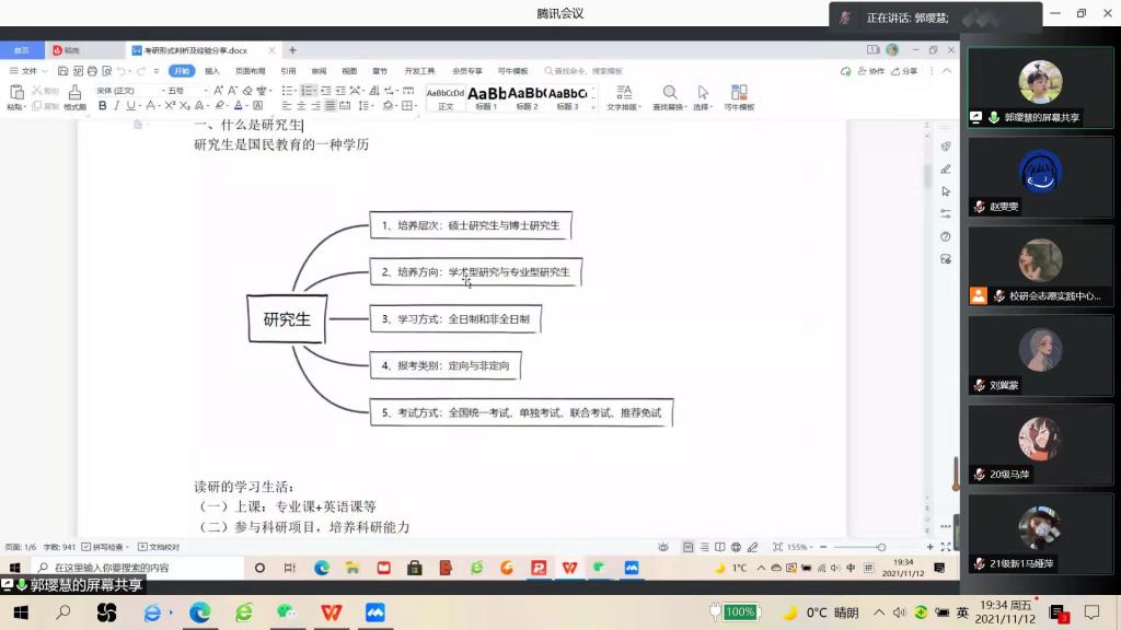 讲座中,郭璎慧结合自身学习经验,向同学们分享了考研路上的经验方法,具体分为研究生是什么、考研形式、如何高效学习三大方面。