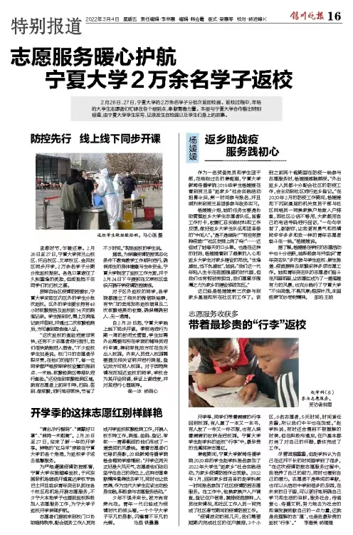2019级、2020级网络与新媒体专业的同学联动银川晚报对学校“2022年开学季”进行策划、专版已于3月4日刊出。