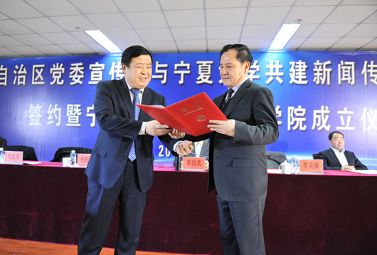 会上,自治区党委宣传部、宁夏日报报业集团、宁夏广播电视台领导与宁夏大学领导签订了共建协议书,今后,将在管理机构、精品课程、骨干队伍、实践基地、研究智库5个方面进行实质性共建,力争通过5年左右的建设,把赚钱游戏