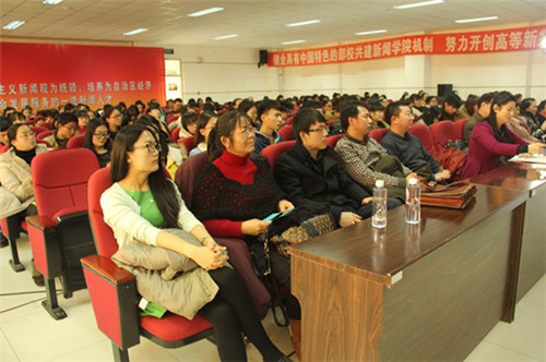 的全体师生带来了一场题为“从客户端看媒体融合发展”的学术讲座。讲座由校党委副书记赵利宁主持,300余名师生聆听了讲座。