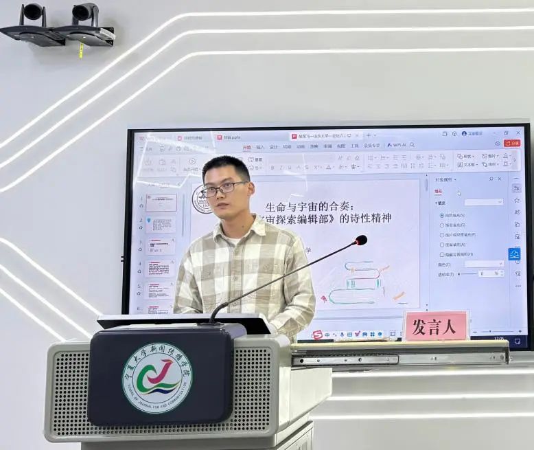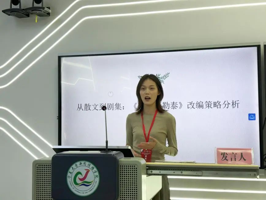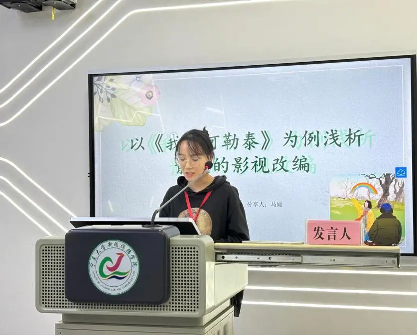 宁夏大学马媛带来了《以<我的阿勒泰>为例浅析散文的影视改编》分享汇报,通过分析散文影视化改编的难点和意义,分析了电视剧《我的阿勒泰》改编策略,并进一步提出忠实于原著精神同时创新叙事结构、视听觉与情感表达实现完美契合、地域文化与民族风情生动展现的改编思路。