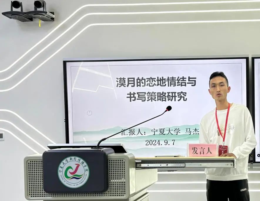 宁夏大学文赚钱游戏 马杰以西北地区知名作家漠月作为研究对象,以《漠月的恋地情结与书写策略研究》为题进行了分享,从漠月小说创作中的“故乡之恋”及其“恋地情结”的书写策略两个维度论述了漠月“恋地情结”的文学创作价值。